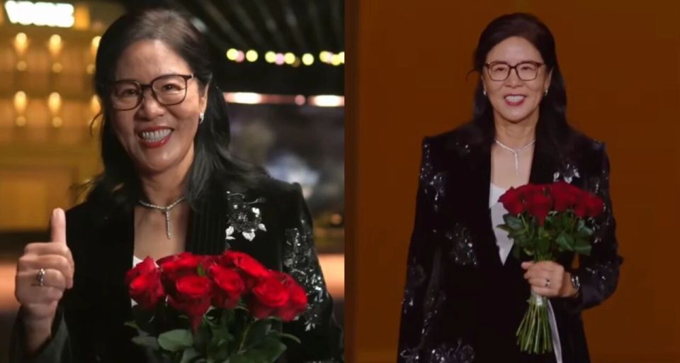 盛典现场布景仿佛欧洲古典三层宅邸,巨大的“VOGUE”字样熠熠生辉,灯光追随之下,65岁的郎平手捧红玫瑰,站在中央,笑容温婉、从容自信,一如她几十年来面对赛场与人生风浪的态度。